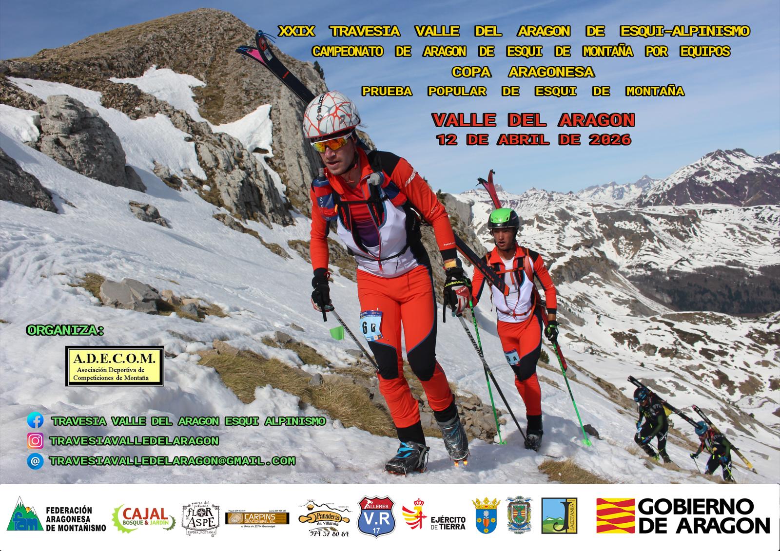 La Federación Aragonesa de Montañismo anuncia que el próximo domingo 12 de abril se celebrará una de las citas más destacadas del calendario autonómico de esquí de montaña. En esta jornada tendrá lugar el Campeonato de Aragón por Equipos y la final de la Copa de Aragón de esquí de montaña, en el marco de la XXIX Travesía Valle de Aragón de Esquí-Alpinismo y tendrá lugar en Candanchú (Huesca).